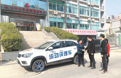 晉江市信訪評(píng)理員乘坐“流動(dòng)評(píng)理車(chē)”開(kāi)展上門(mén)評(píng)理。