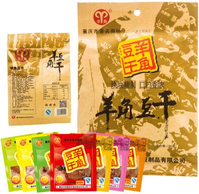 “羊角豆干是老川東過年走人戶的扎包之一!睆堄陆榻B,羊角豆干制作需經(jīng)過三鹵三榨等一系列考究的古法熱漿工藝制作,整個過程需要制作者細致考究的功夫。而今,羊角豆干已推出5大產(chǎn)品系列:傳統(tǒng)精品羊角豆干系列、風味羊角豆制品系列、大豆蛋白食品系列、餐飲豆制品系列、功能豆制品系列共81支單品,深受消費者追捧。