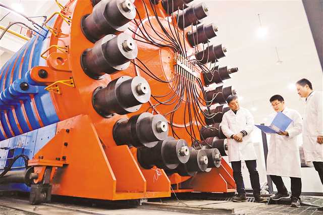 2月7日,重慶大學(xué)科研人員在深部煤巖工程多功能物理模擬試驗(yàn)系統(tǒng)工作。記者 盧越 攝/視覺重慶