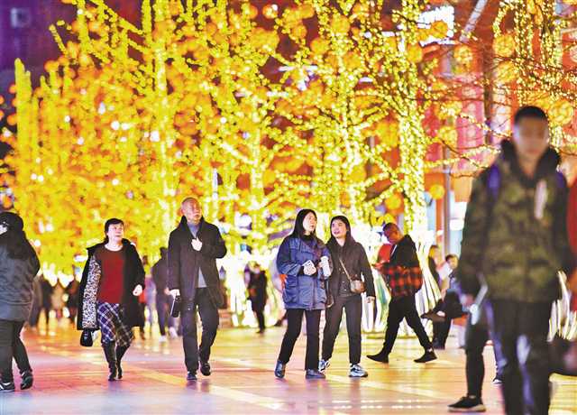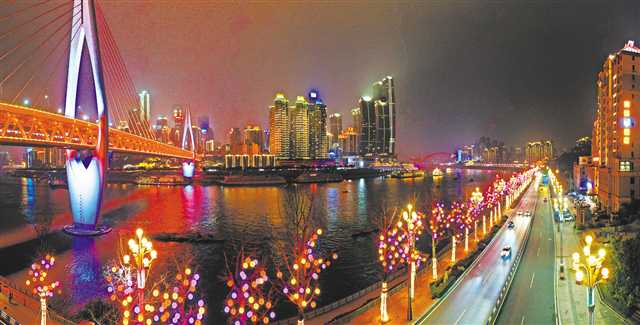 新春的腳步近了,重慶的街頭巷尾,迎春燈飾亮了。