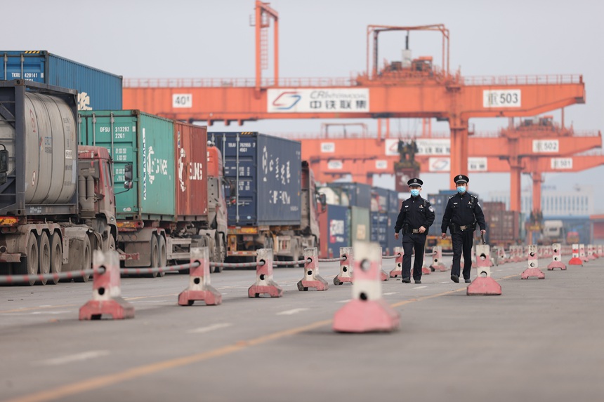 “我們每天的工作就是對出入團(tuán)結(jié)村中心站的貨車進(jìn)行安全檢查,對中歐班列的線路進(jìn)行日常巡查!崩准そ榻B。