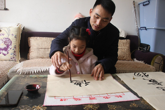 魏俊巖教女兒書寫家訓(xùn)。 巴南區(qū)融媒體中心供圖