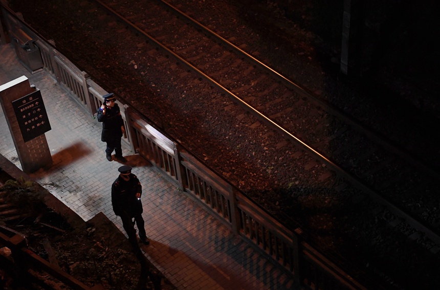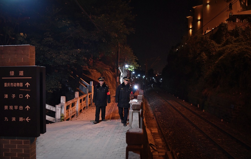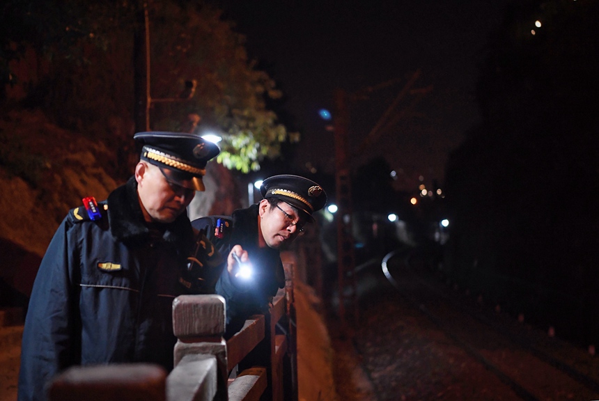 巡查隊(duì)員在轄區(qū)內(nèi)的鐵路步道巡查,排除安全隱患。周舸攝