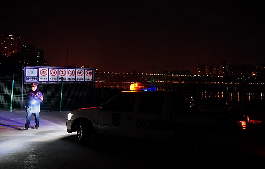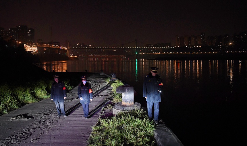 巡查隊(duì)員在轄區(qū)內(nèi)的江邊巡查,排除安全隱患。周舸攝