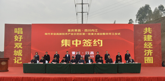 人民網(wǎng)重慶2月18日電 18日,內(nèi)江榮昌現(xiàn)代農(nóng)業(yè)高新技術(shù)產(chǎn)業(yè)示范區(qū)2021年第一批重大項(xiàng)目集中開工儀式暨現(xiàn)場考察活動在重慶榮昌、四川內(nèi)江兩地舉行。