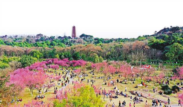 2月17日,照母山森林公園,市民攜家?guī)Э谂d致勃勃在梅園賞梅拍照,享受春日踏青的樂趣。特約攝影鐘志兵/視覺重慶