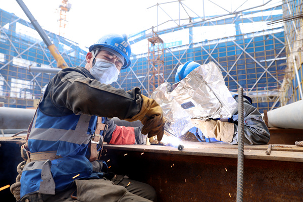 魏紅光老家在河南,在禮嘉智慧公園白云湖會議中心工程(智慧館)項目上做鋼結構。他說,這是他第一次在外地過年。春節(jié)期間,他和工友們忙著項目頂部的桁架安裝和焊接。