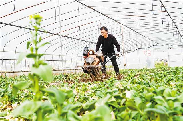 2月17日,在北碚區(qū)三圣鎮(zhèn)春柳村產(chǎn)業(yè)扶貧示范基地,村民們?cè)缭绲貋?lái)到菜園里翻地、除草、打窩,準(zhǔn)備栽植空心菜,為豐收提前做好準(zhǔn)備。特約攝影 秦廷富/視覺(jué)重慶