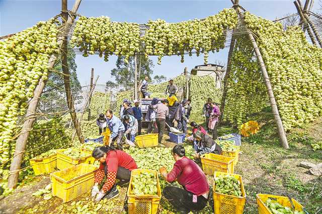二月二十日,涪陵區(qū)馬武鎮(zhèn),村民正在晾曬青菜頭。首席記者 龍帆 攝/視覺重慶