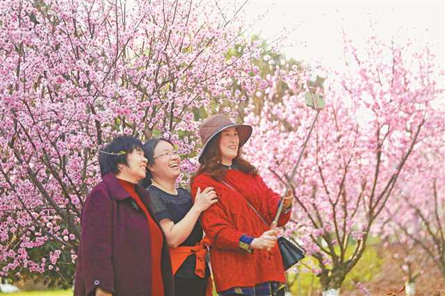 二月二十二日,九曲河濕地公園鮮花綻放,市民正在拍照合影,留下春天的色彩。記者 羅斌 攝\視覺重慶
