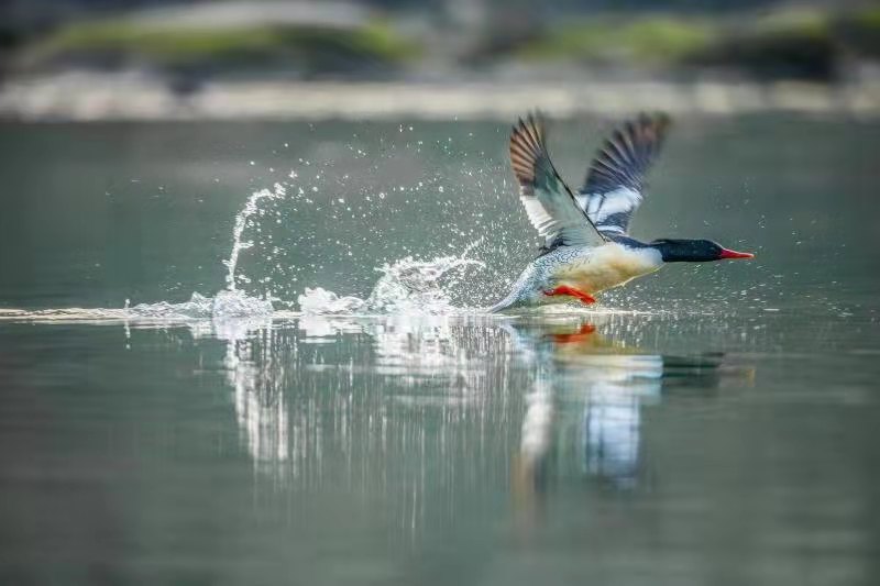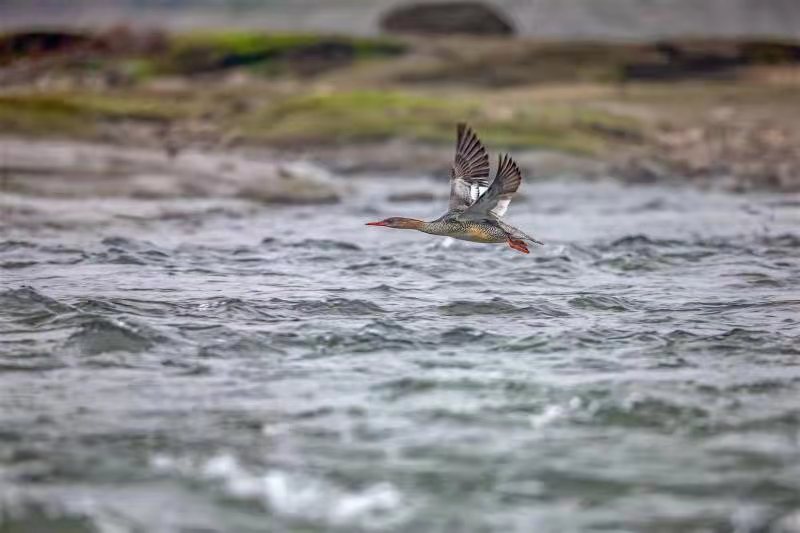 人民網(wǎng)重慶2月24日電(陳琦、黃軍)近日,重慶觀鳥會在重慶市江津區(qū)西湖鎮(zhèn)綦河開展中華秋沙鴨越冬同步調(diào)查。調(diào)查河段近30公里,歷時一天,共統(tǒng)計到了中華秋沙鴨29只。攝影師還記錄下了中華秋沙鴨飛掠水面的精彩畫面。