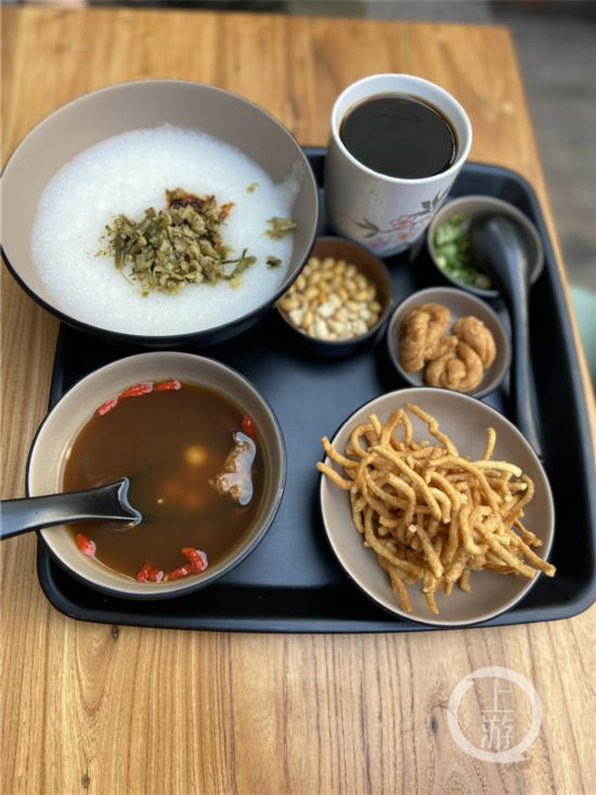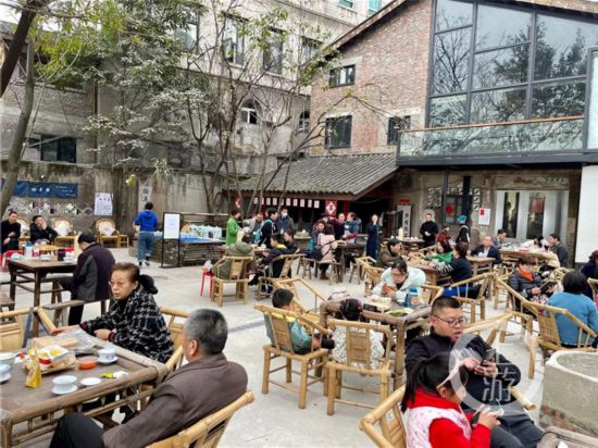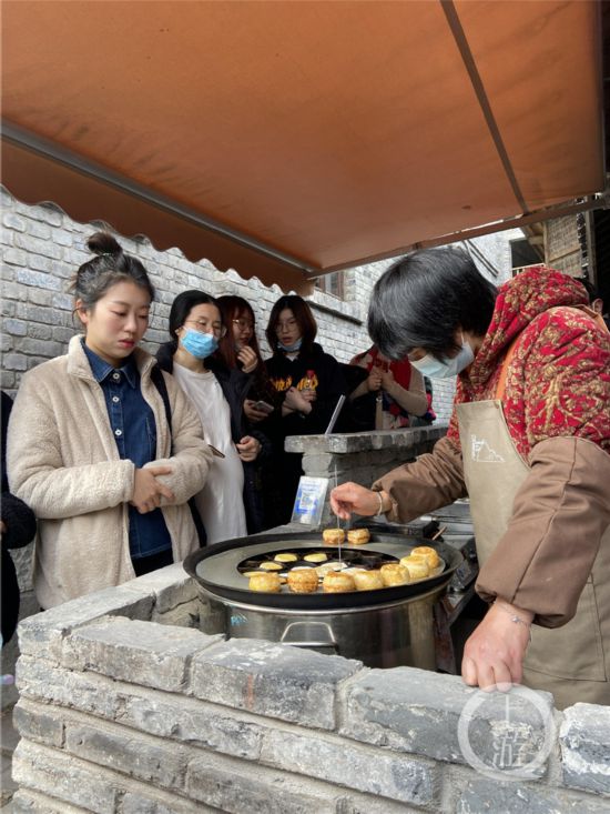 2月17日下午,小長(zhǎng)假最后一天,家住大渡口的袁先生帶著老母親和妻子、女兒來逛山城巷,四個(gè)人要了兩個(gè)油茶套餐!案杏X山城巷變了,好像又沒變。變得更好看了,但還是保留了老味道!痹壬嬖V上游新聞·重慶晨報(bào)記者說,“比如這個(gè)油茶,本來就是重慶特色小吃。米糊是現(xiàn)熬的,吃起來有顆粒感,是小時(shí)候的味道。油辣子很香,馓子也酥脆!痹壬哪赣H吃下了一整碗紅糖小湯圓,她說:“以前每天能吃到的小吃,現(xiàn)在吃一次都好像成了一件奢侈的事情。在這里能找到回憶,以后要多來轉(zhuǎn)轉(zhuǎn)。”