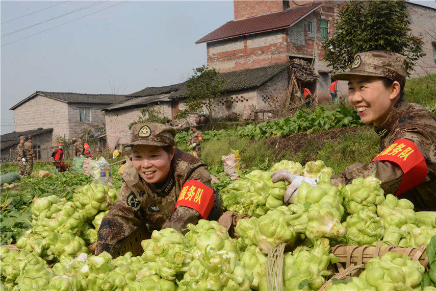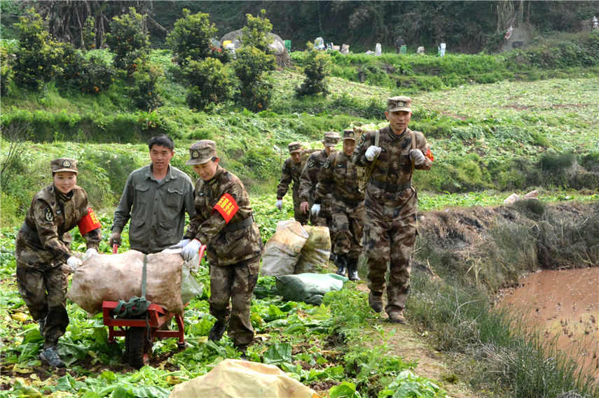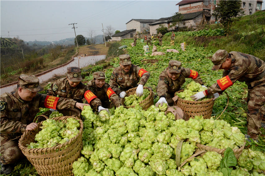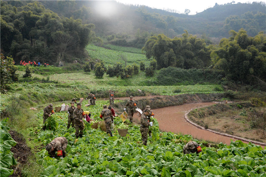 人民網(wǎng)重慶2月23日電(常碧羅、陳琦)最近幾天,隨著氣溫陡升,作為享譽(yù)全球的“涪陵榨菜”原料青菜頭生產(chǎn)基地,重慶市涪陵區(qū)龍橋街道的3萬(wàn)余畝青菜頭因勞動(dòng)力不足,即將錯(cuò)過(guò)收砍的最佳時(shí)機(jī)。菜農(nóng)個(gè)個(gè)心急如焚。涪陵區(qū)人武部得知消息后,立即組織民兵前往田間地頭助農(nóng)搶收。
