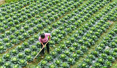 2月24日,貴州省從江縣貫洞鎮(zhèn)宰門村農(nóng)民在蔬菜地里勞作。新華社記者 楊文斌 攝