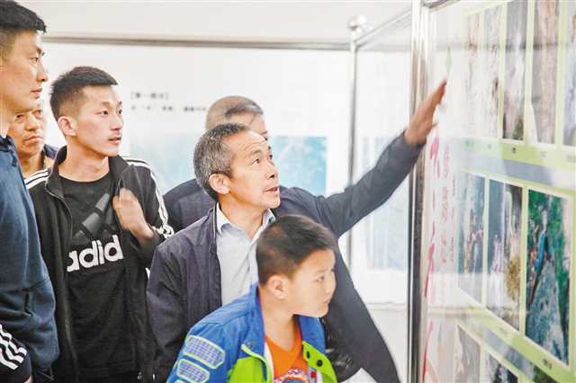 2019年4月14日,巫山縣竹賢鄉(xiāng)下莊村“下莊精神”文化陳列館,毛相林向來自新疆和萬州的游客講述懸崖路修筑的故事。(本報(bào)資料圖片)記者 萬難 攝/視覺重慶