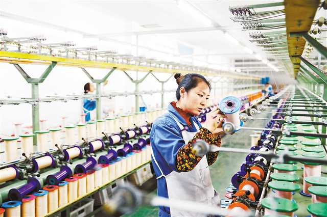 2月26日,女工在黔江區(qū)工業(yè)園區(qū)花神絲綢有限公司生產(chǎn)車間勞作。春節(jié)復(fù)工復(fù)產(chǎn)后,黔江區(qū)工業(yè)園區(qū)協(xié)助絲綢公司,組織人力開足馬力生產(chǎn),加工海外訂單,確保員工穩(wěn)崗增收,按時按質(zhì)完成訂單!√丶s攝影 楊敏/視覺重慶