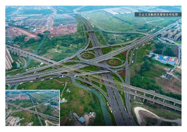 大云立交航拍實(shí)景結(jié)合對比圖。重慶市住房和城鄉(xiāng)建設(shè)委員會供圖
