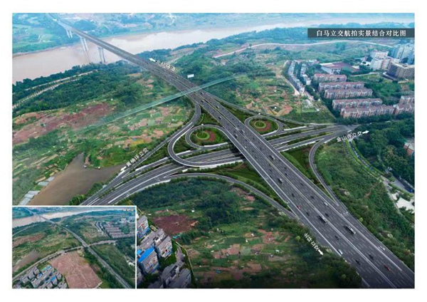 白馬立交航拍實(shí)景結(jié)合對比圖。重慶市住房和城鄉(xiāng)建設(shè)委員會供圖