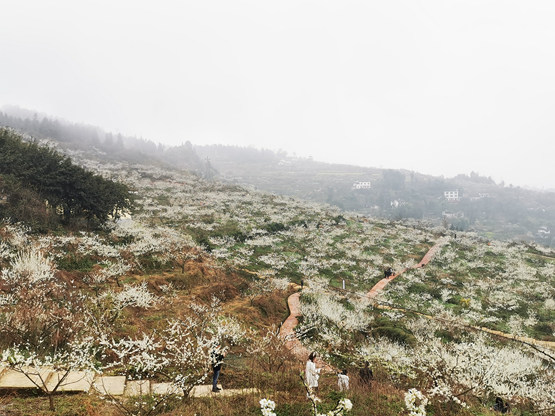 來(lái)墊江看萬(wàn)畝李花綻放潔白如雪