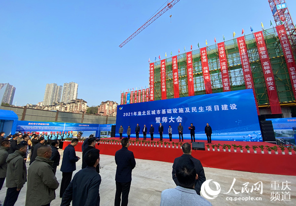 2021年渝北區(qū)城市基礎(chǔ)設(shè)施及民生項(xiàng)目建設(shè)誓師大會(huì)現(xiàn)場(chǎng)。人民網(wǎng) 劉政寧攝