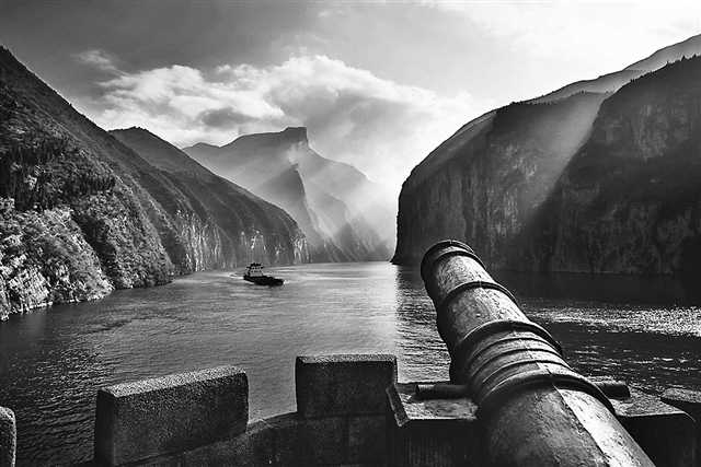 漫步在古徑幽林,看峽口那紅了又綠、綠了又紅的紅葉,撲面而來的,除了江風,還有讓人流連忘返的詩歌的清香;站在烽火臺前,撫摸那斑駁的大炮,那震天的戰(zhàn)鼓和越云的廝殺聲仿佛就響在耳邊,烽煙滾滾金戈鐵馬的古戰(zhàn)場仿佛就浮現(xiàn)在眼前;佇立白帝城之巔,長江三峽第一峽——瞿塘峽就展現(xiàn)在眼前,赤甲山和白鹽山對峙,鎖住了長江的咽喉,形成雄偉壯美的夔門;俯視腳下,昔日咆哮奔騰的長江水,如今安靜得如嫻淑的少女,輕盈地與夔門擦身而過,穿過綿綿群山延伸到遠方。一霎時,初升的太陽躍出赤甲山頂,陽光撕開布滿峽谷的晨霧,灑下一江的緋紅。江上微波粼粼,閃爍著點點金光,巍巍夔門便在這光與影的交錯中多了幾分妖嬈與嫵媚。