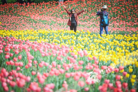 市民暢游郁金香花海。華龍網(wǎng)記者 李裕錕 攝