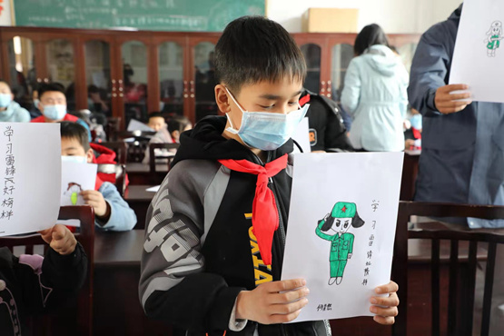 “這是我畫的雷鋒叔叔,他是解放軍所以在敬禮!”小朋友何昊然說(shuō)。志愿者們通過(guò)提問(wèn)題,講解PPT,為孩子們講解了雷鋒事跡和雷鋒精神,現(xiàn)場(chǎng)讓孩子們畫出自己心目中的雷鋒形象并進(jìn)行展示。