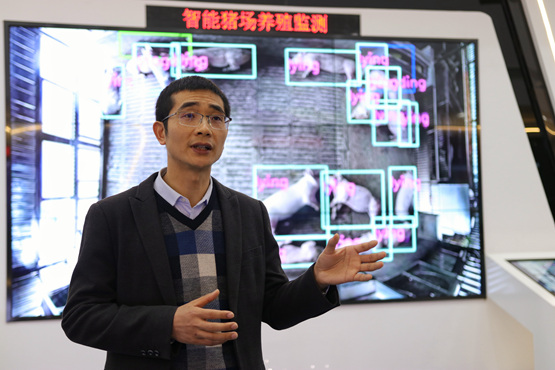 講解智能豬場(chǎng)養(yǎng)殖模式。 向詩(shī)佳攝