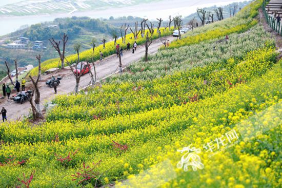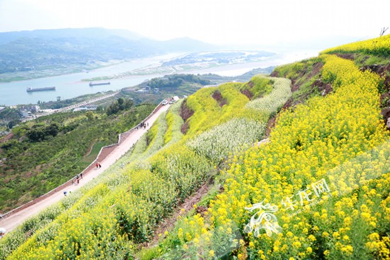華龍網(wǎng)消息,三月陽(yáng)春,正是賞花踏青好時(shí)節(jié)。3月11日,華龍網(wǎng)-新重慶客戶端記者來到大渡口區(qū)跳蹬鎮(zhèn)石盤村金鰲山,看見金燦燦的油菜花梯田與遠(yuǎn)處的江山船舶相輝映,猶如壯闊的畫卷,吸引了不少市民前來觀景賞花。