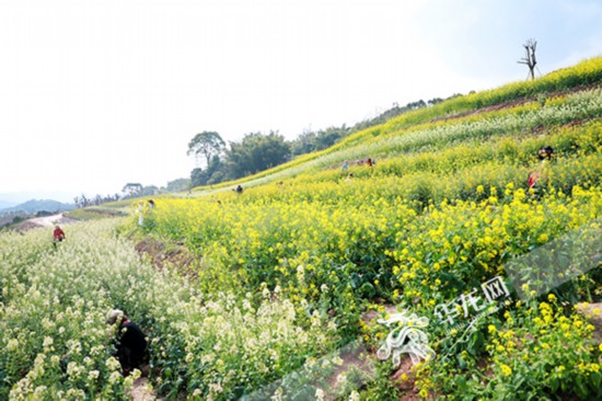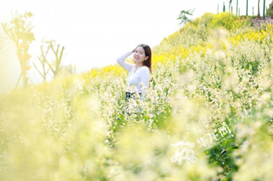 大渡口區(qū)跳蹬鎮(zhèn)金鰲山五彩油菜花開,吸引了許多市民前來打卡。