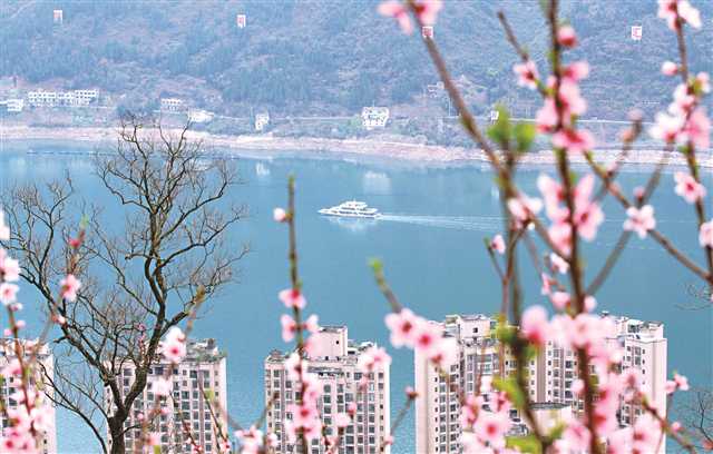 巫山縣境內(nèi),桃花、李花、油菜花盛開,春意濃濃,把長江兩岸裝扮得分外美麗,田園風(fēng)光如一幅生態(tài)畫卷。