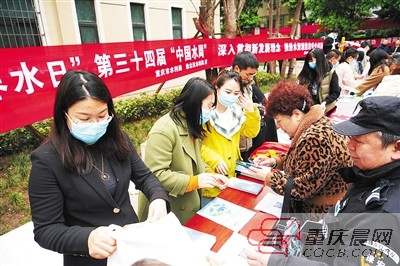 重慶市水利局在渝北區(qū)松牌路社區(qū)開(kāi)展“世界水日”宣傳活動(dòng)現(xiàn)場(chǎng)。上游新聞?dòng)浾?甘俠義 攝