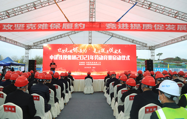 人民網(wǎng)重慶3月23日電 近日,中建鐵投集團2021年“攻堅克難保履約·競進提質促發(fā)展”勞動競賽啟動儀式在重慶東站項目舉行。