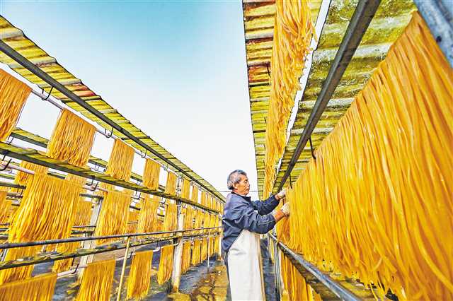 榮昌區(qū)河包鎮(zhèn),順溜食品廠工人正在晾曬粉條。(本報資料圖片)記者 龍帆 攝/視覺重慶