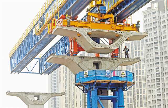 軌道18號線施工采用新技術(shù) 節(jié)段梁拼裝像空中“串糖葫蘆”