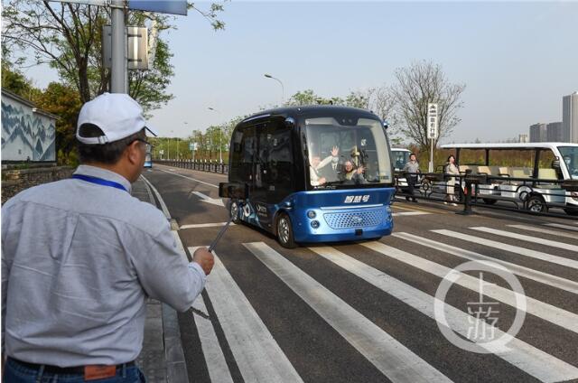 刷臉入園、智慧導(dǎo)覽、無人駕駛車接駁、智慧書局看書、聽機(jī)器人彈鋼琴、騎沉浸式自行車……在重慶禮嘉智慧公園內(nèi),參訪的多位海外華文媒體高層人把這些輪番體驗一遍后,連聲稱贊在這里遇見了“未來之城”。
