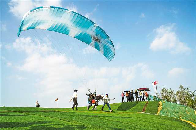 3月27日,游人在北碚區(qū)天府鎮(zhèn)斗鷹滑翔傘基地體驗(yàn)滑翔樂(lè)趣。近年來(lái),北碚區(qū)持續(xù)推進(jìn)旅游+農(nóng)業(yè)發(fā)展,打造公園城區(qū),建設(shè)美麗鄉(xiāng)村,深化文旅融合,致力于把北碚建成“處處是風(fēng)景、全城可休閑”的全域旅游大景區(qū),持續(xù)完善基礎(chǔ)設(shè)施配套,營(yíng)造良好旅游發(fā)展環(huán)境,加快建設(shè)休閑度假目的地。特約攝影 秦廷富/視覺(jué)重慶