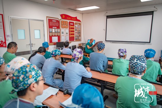 每天早上7點(diǎn)30分,是劉夢虓的上班時(shí)間。換好衣服后,所有參與手術(shù)的麻醉醫(yī)生都要參加晨會(huì),了解手術(shù)基本情況、特殊患者的病情以及前一天的搶救情況。無異議后,麻醉醫(yī)生將奔赴各自的手術(shù)室。新華網(wǎng) 耿駿宇 攝 陳雨 文