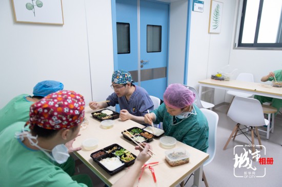 一臺手術(shù)中,麻醉醫(yī)生往往最早進(jìn)手術(shù)室,最晚離開。加上晨會(huì)和每臺手術(shù)之間的準(zhǔn)備時(shí)間,劉夢虓基本每天要在這個(gè)“悶罐”里呆上至少10個(gè)小時(shí)!叭绻中g(shù)難度大的話,一口氣站在手術(shù)臺邊7到8個(gè)小時(shí)也是家常便飯。所以,吃飯的時(shí)間,對我們而言是難得的放松時(shí)間。”劉夢虓說。新華網(wǎng) 耿駿宇 攝 陳雨 文