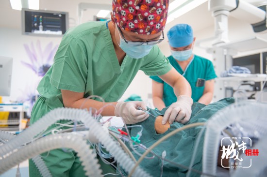 “患者躺下后,我們要在胸前貼上電極片,用來監(jiān)測生命體征。準(zhǔn)備好這些,就開始麻醉醫(yī)生的絕活——深靜脈穿刺和動(dòng)脈穿刺,這也是搶救的核心技術(shù)!眲籼嵳f。新華網(wǎng) 耿駿宇 攝 陳雨 文