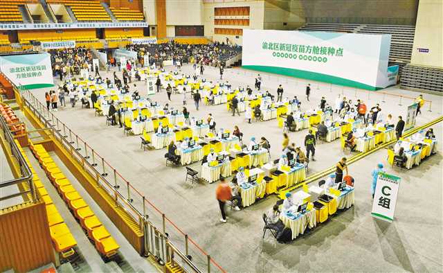 渝北區(qū)新冠病毒疫苗方艙接種點位于渝北區(qū)體育館,場地面積約2.5萬平方米。