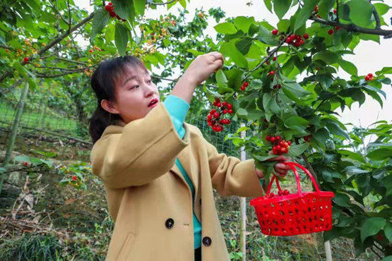 游客采摘櫻桃。璧山區(qū)委宣傳部供圖