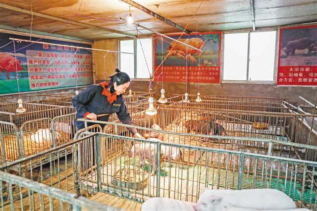 2020年4月2日,重慶市榮昌興旺種豬場的工作人員在仔豬待售舍查看仔豬的情況。(資料照片)新華社發(fā)