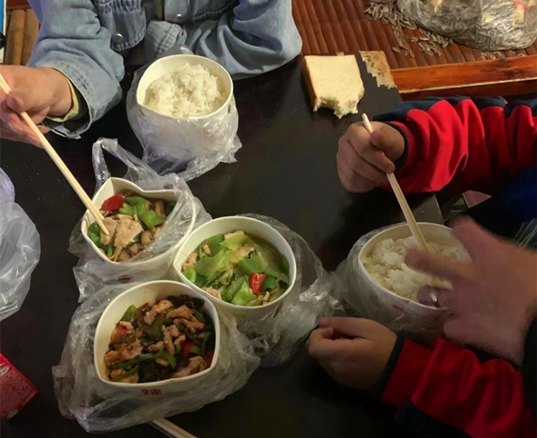 因擔(dān)心在家的兩個(gè)小孩,干警決定前往劉雪家探望劉霜和劉懵,干警到達(dá)后看見(jiàn)的第一個(gè)畫(huà)面就是兩個(gè)瘦小的孩子在昏暗的燈光下吃著泡面?粗鴥蓚(gè)懂事的孩子,干警們十分心疼,立即又驅(qū)車前往鎮(zhèn)上為姐弟倆買了兩份飯菜?粗峭袒⒀实膬蓚(gè)孩子,干警們心酸不已。