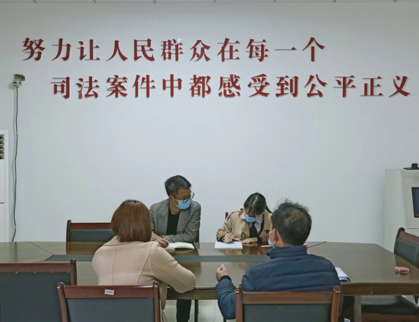 干警對(duì)劉雪父母進(jìn)行調(diào)解。開(kāi)州區(qū)法院供圖