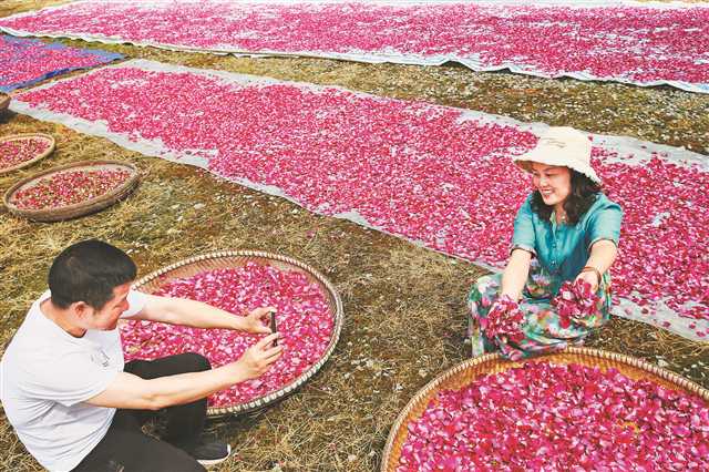 2020年五一長假期間,黔江區(qū)沙壩鎮(zhèn)天香玫瑰莊園的300畝玫瑰盛開,引來不少游客前來游玩、賞花和體驗(yàn)采花、晾曬花瓣。特約攝影 楊敏/視覺重慶