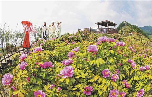 2020年3月23日,在墊江縣愷之峰旅游區(qū),漫山遍野的牡丹花進(jìn)入盛花期,吸引了不少市民踏青賞花。特約攝影 向曉秋/視覺重慶