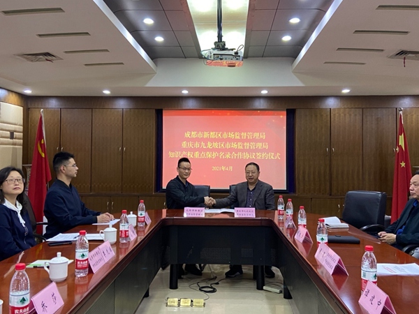 兩區(qū)市場監(jiān)管局簽訂《知識產(chǎn)權(quán)重點(diǎn)保護(hù)名錄協(xié)作協(xié)議》。重慶市九龍坡區(qū)市場監(jiān)管局供圖
