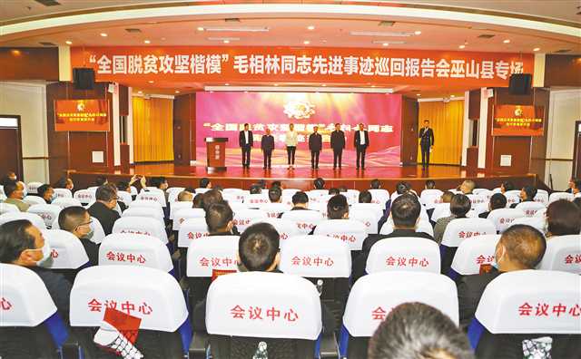 4月20日,“全國(guó)脫貧攻堅(jiān)楷!泵嗔滞鞠冗M(jìn)事跡巡回報(bào)告會(huì)首站在巫山縣舉行,6位報(bào)告人講述了下莊村的戰(zhàn)貧故事。