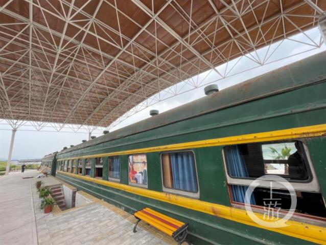 一邊是滔滔江水,一邊是長(zhǎng)長(zhǎng)的站臺(tái),穿過月臺(tái),來到會(huì)客廳,穿過走廊,然后來到臥室……這不是工業(yè)時(shí)代的總統(tǒng)專列,而是重慶市涪陵區(qū)紅酒小鎮(zhèn)正在打造的火車民宿。